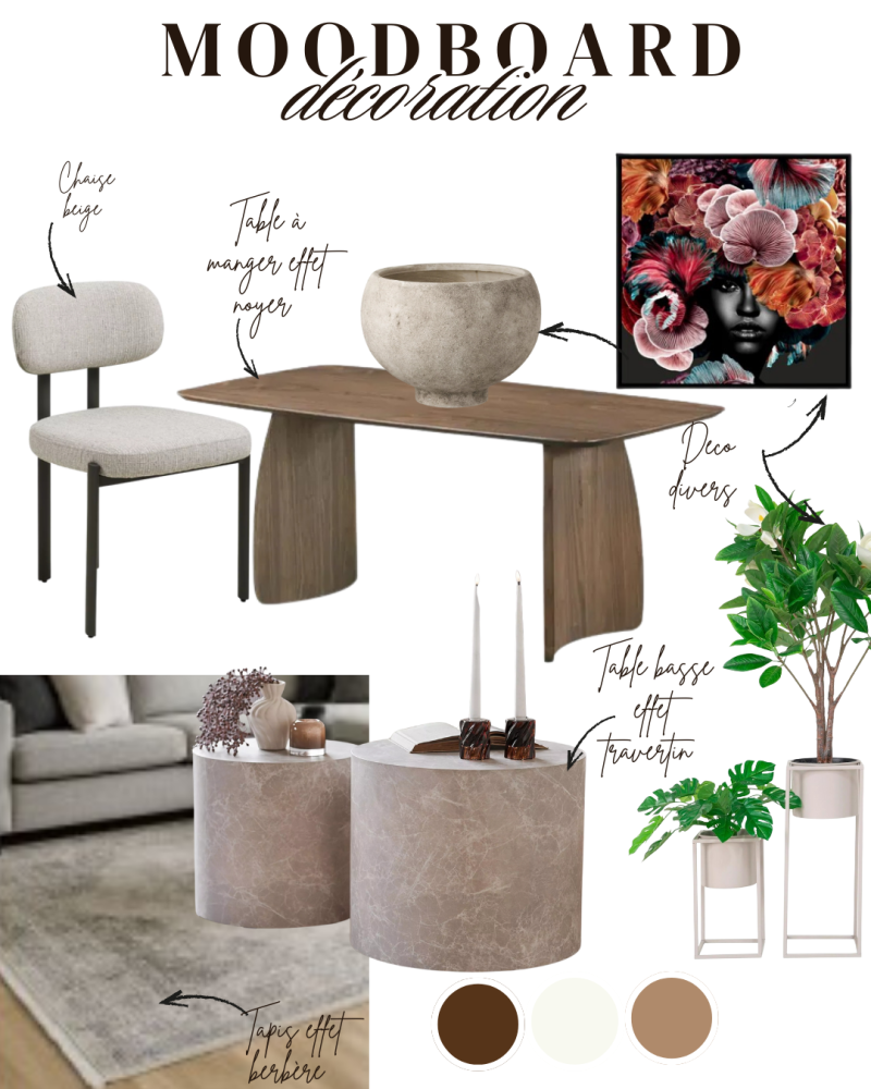 Le mood board est un outil précieux pour visualiser l’harmonie d’un espace avant même sa réalisation. Il aide à faire les bons choix, à affiner vos envies et à créer une ambiance cohérente, en accord avec votre mode de vie.